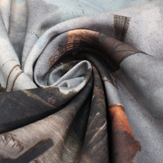 Be sure to press all seams as you go, and trim off any excess fabric at the darts and corners for a nice, crisp finish. The base fabric is a wonderful quality all-cotton canvas, which is durable and stable in both directions and similar in weight to a medium weight denim or twill. Each panel is 46" long and the "Dutch landscapes" design features a subdued, earthy palette. Machine or hand wash cool and lay flat to dry. Do not bleach or tumble dry and iron on medium.