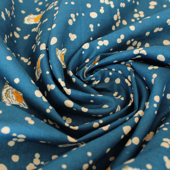 Kokka Japan "Echino Fox" cotton lawn - marine blue