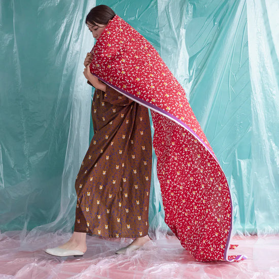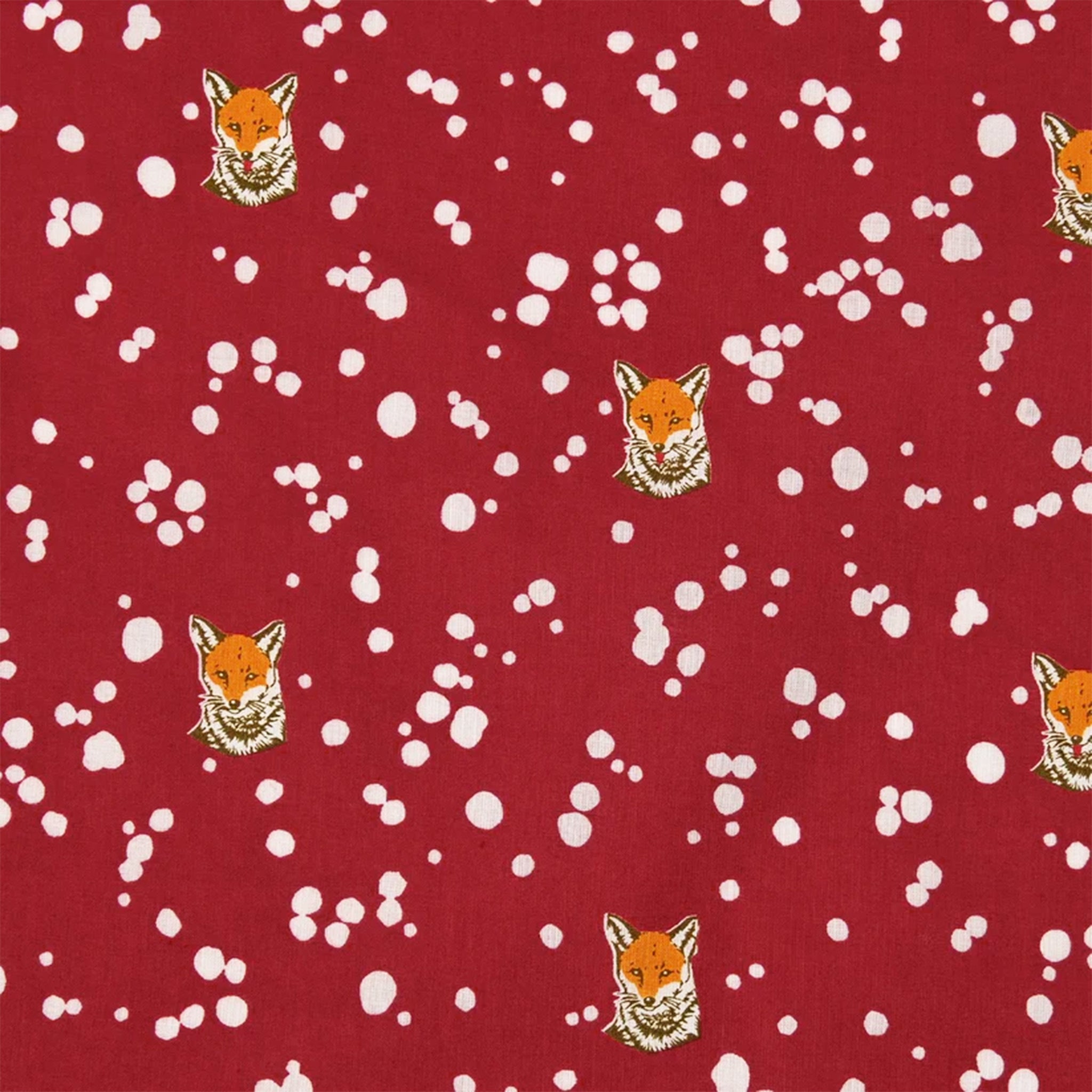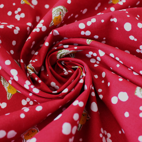 From Kokka of Japan, this fabric was made with one of the Japanese fabric maker's most beloved collaborative designers, Etsuko Furuya. This is from their limited edition echino brand line of fabrics! A luxuriously soft 100% cotton lawn, it is lightweight and just about opaque. It is stable in both directions with a soft drape. The "echino fox" design has a 4" vertical repeat between foxes and is available in 4 colorways. This one has a cherry red background. Note the narrower width which is typical for Japanese fabrics. Make a shirt, blouse, tunic, dress, skirt, etc. Machine wash with cool water on a delicate setting or hand wash and hang or lay flat to dry. Iron on low-medium setting on the reverse side of the fabric. Please test first.