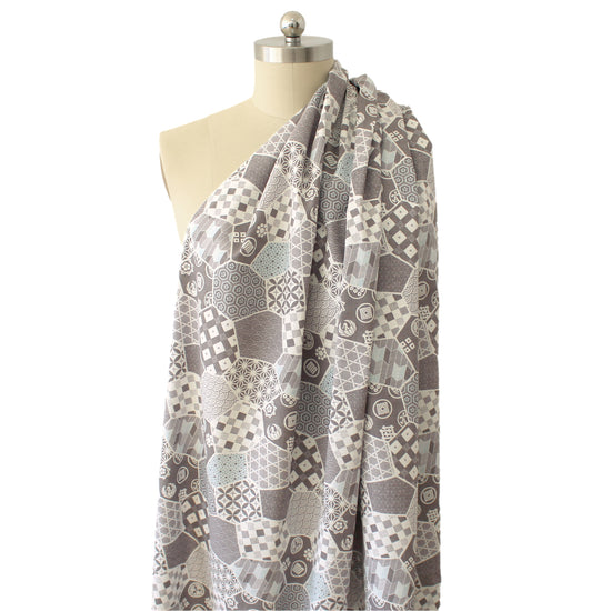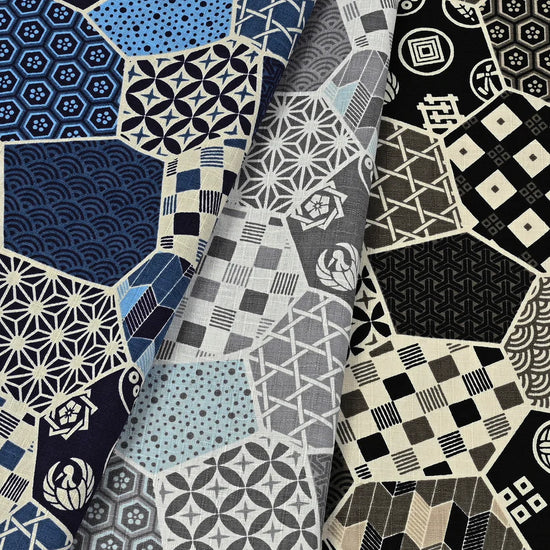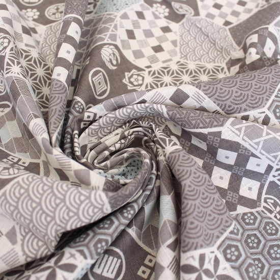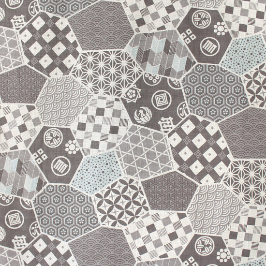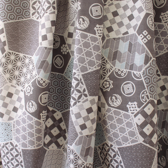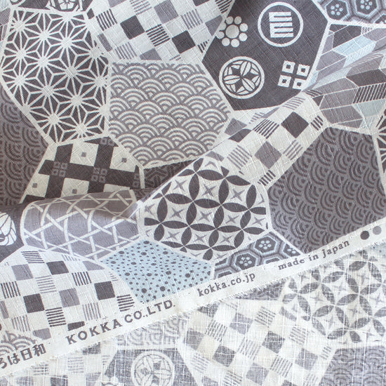 From Kokka of Japan, this is a lovely quality all-cotton dobby cloth, an opaque shirting or dress weight with a cottony drape and no stretch. The medium-scale patchwork print (12" repeat) features calm shades of gray and powder blue on a soft white base. Perfect for sewing shirts, dresses, skirts, accessories, home decor, pants, apron, and even lightweight jackets or robes. This fun patchwork dobby could also be used for a "cheater" whole cloth quilt! The manufacturer recommends to hand or machine wash warm, hang to dry. Please test first.