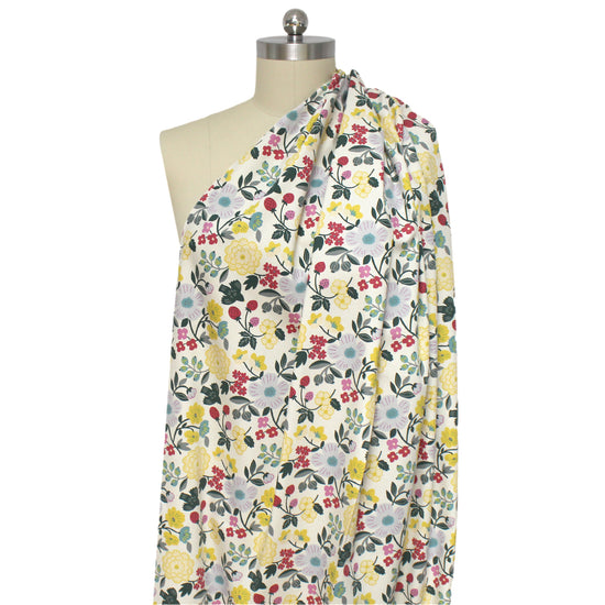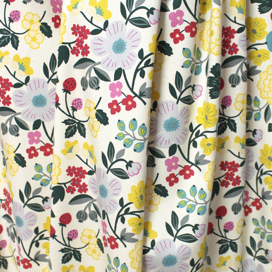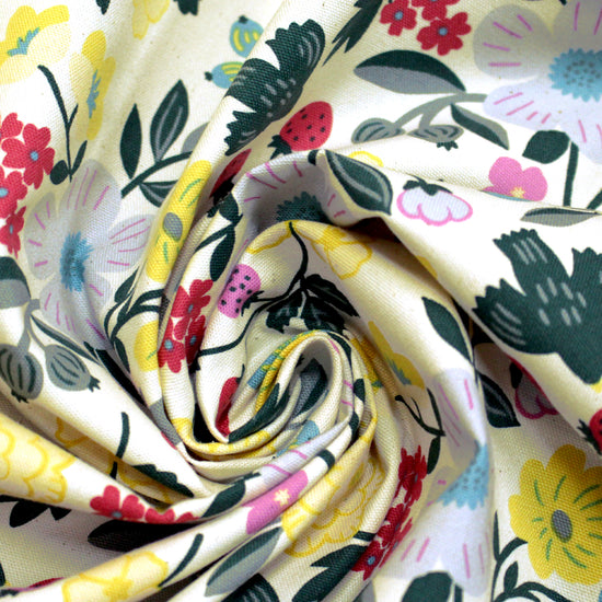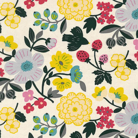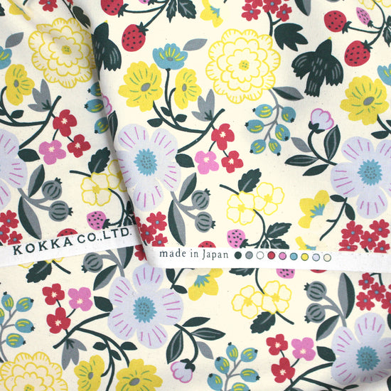 From KOKKA, a favorite Japanese fabric supplier, this is an outstanding quality all-cotton oxford. It's an opaque shirting or dress weight with a dry hand and cottony drape. The delightful "Sopo" botanical design is printed in a cheerful range of color on a cream background. Make a lovely shirt, dress, skirt, etc. A great choice for children and adults alike. Machine wash cold and tumble dry on low or hang to dry.