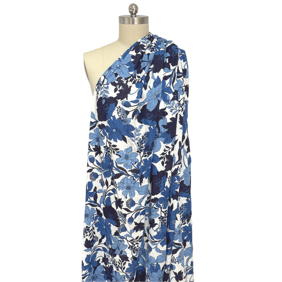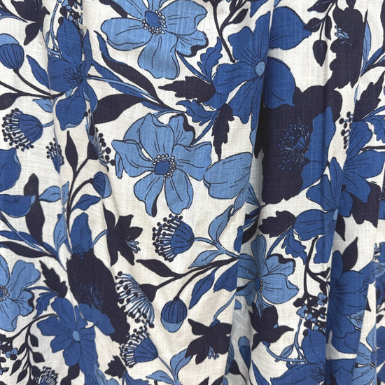 'French blue floral' viscose/linen slub woven