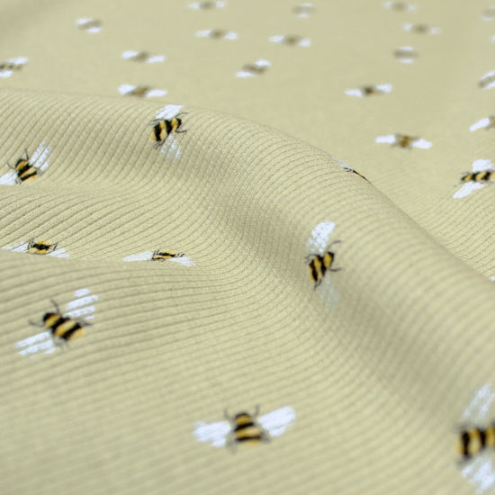 'busy bee' cotton rib knit, Oeko-Tex - wheat