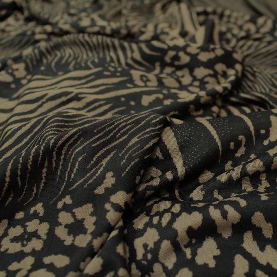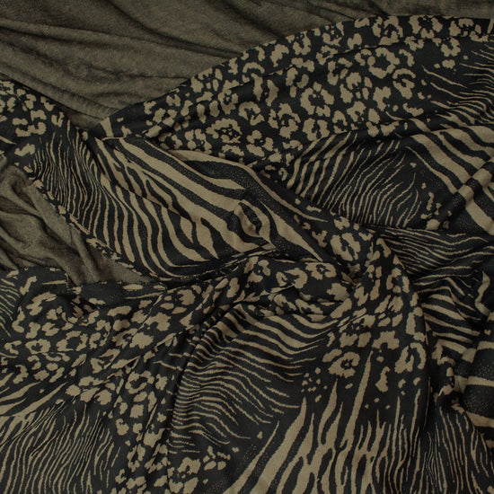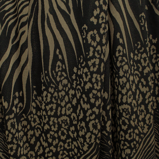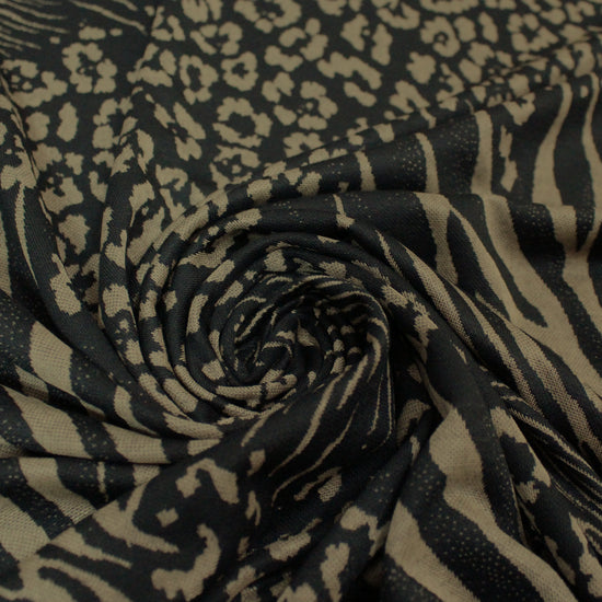 Made in Italy for the iconic brand, this is a gorgeous viscose knit with a fantastically soft hand and a luscious, drapey character. It is nearly opaque and lightweight with 15% stretch in each direction. When you handle this fabric, you can instantly tell that the quality is exceptional. The yarn-dyed animal print design (26.5" pattern repeat)Ā features a classic color story of black and tan. Make a designer quality top, tunic, dress or skirt, comfy and elegant separates, lightweight cardigan, etc. Hand or machine wash cool and lay flat to dry. Do not wring. iron on low.