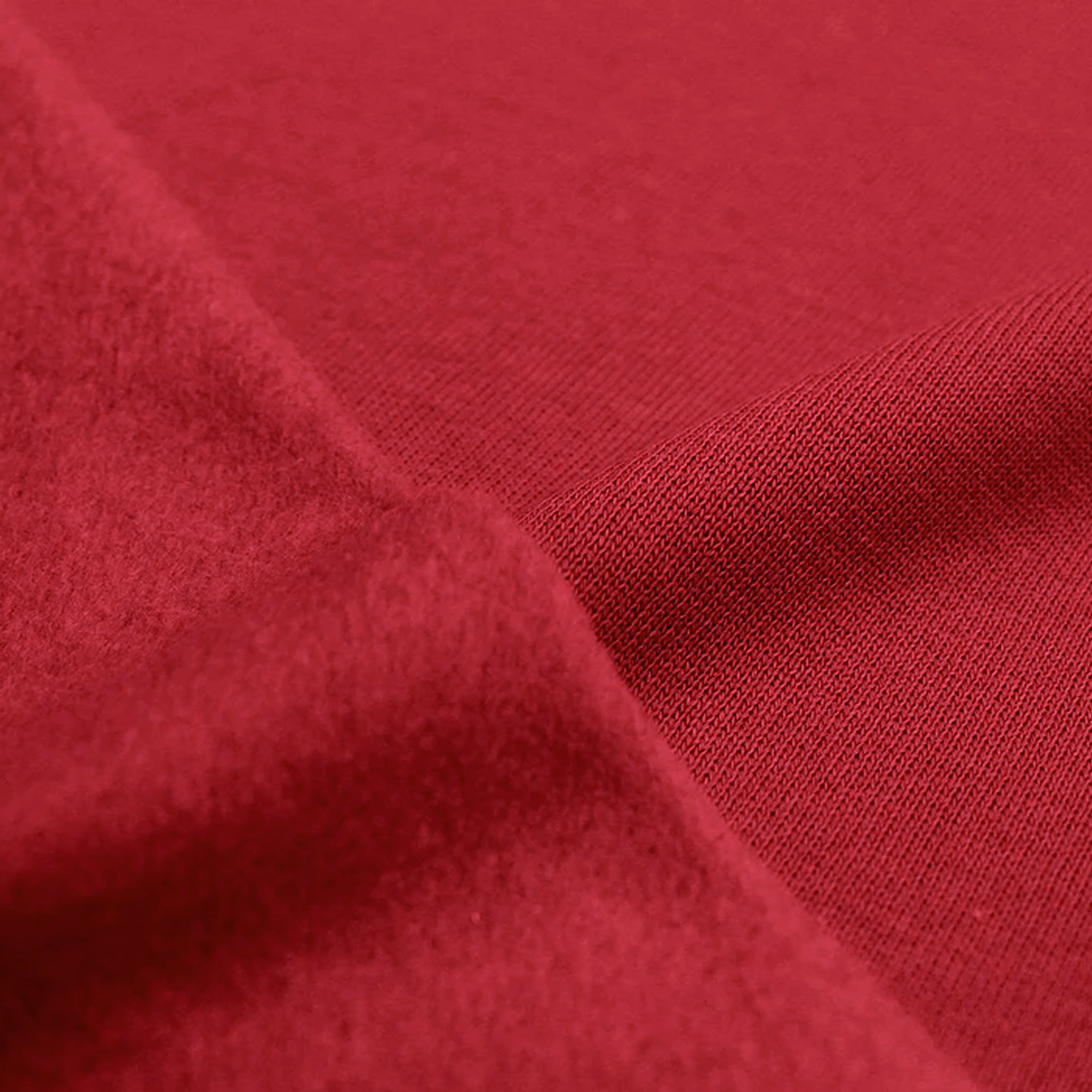 This is an organic cotton sweatshirt knit with an extremely soft brushed fleece back. This fabric is Oeko-Tex certified as well as organic, assuring non-toxic fibers, chemicals and dyes. It is medium weight with some body in the drape and about 20% widthwise stretch. The right side is a plain, flat knit while the reverse has the fleecy, soft texture. The color is a lovely spice tone. This is a casual gem that is perfect for hoodies, casual jackets, cardigans, sweatpants, kids clothing, bathrobes, etc. Machine wash gentle, hang to dry or tumble on low, do not bleach.