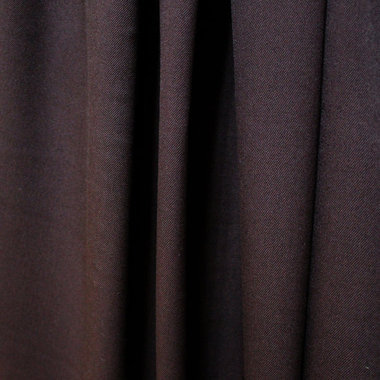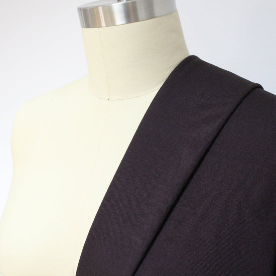 From the French luxury fashion house, this is an exceptional mid-weight suiting, a virgin wool with a small elastic content which provides about 10% give in the width only. It is a classic style with a wonderful drape, a dry hand and a slight surface texture due to a more pronounced weave. The color is a fantastic deep raisin. Very sophisticated, excellent designer quality. This luxury fabric is a great choice for unisex suiting, slacks, jacket, tailored dress or skirt, vest, etc. Dry clean.