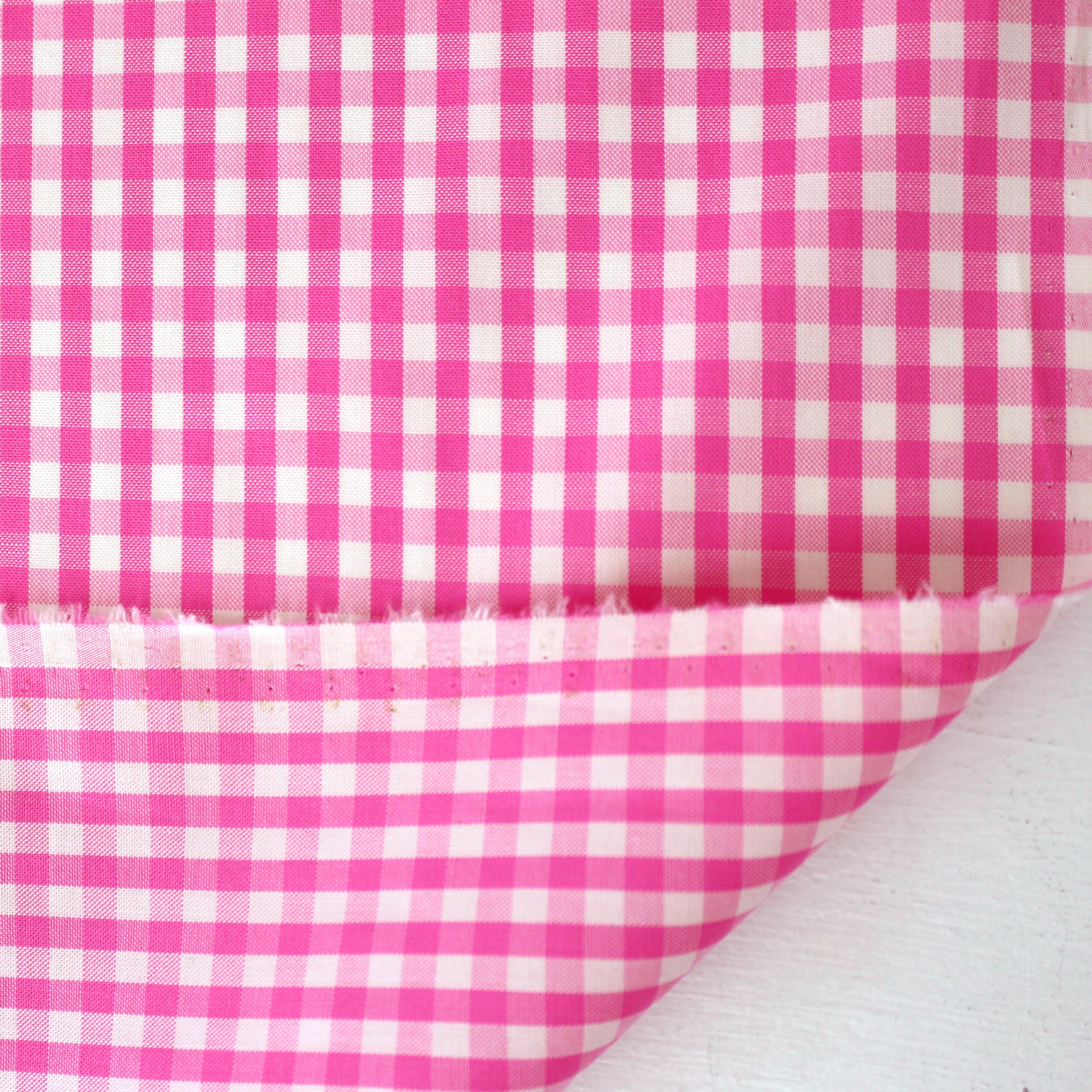 This is a beautiful quality, classic yarn-dyed cotton shirting, a lightweight woven with soft and smooth hand and no stretch. The delightful yarn-dyed gingham plaid design has a 1/2" repeat and features orchid pink and ivory. It is a high quality woven with a cottony drape, perfect for sewing classic shirts, tailored dresses, skirts, pajamas, etc. Hand or machine wash gentle, in cold water and hang to dry (please test first).