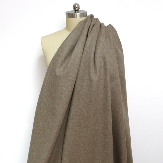 From Italian designer deadstock, this is a decadent 100% wool melton coating in a medium coating weight. A classic and sophisticated style with its warm and dense, super soft weave and slight surface texture. It has body and some firmness in the drape, and the color is a warm smokey taupe. It is stable in both directions and does not fray. Wonderful to work with and a treat to wear! An excellent quality coating weight, perfect for lined or unlined coats, jackets and vests, winter suits, etc. Dry clean only.