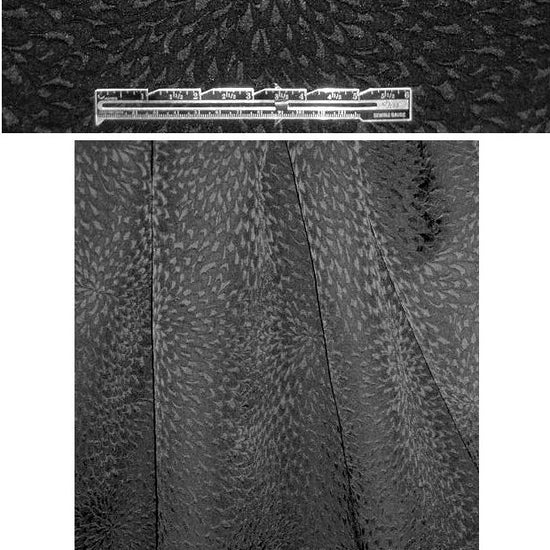 Just in with a new shipment from top French mills, this is a wonderful brocade, a cotton blend, black on black beauty with a fresh and modern petal design that has a slight matelasse' texture. It's medium weight with a more firm drape and body, and it's perfect for a pretty jacket, evening coat or pouffy skirt that will take your basic black attire up a notch! Will work equally well for day or evening. Dry cleaning recommended.