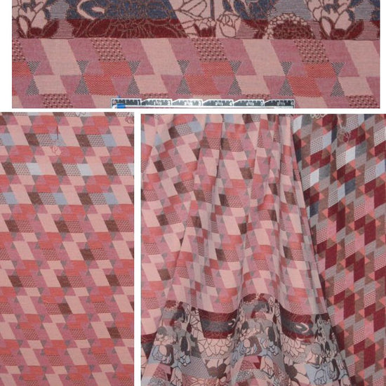 French berry/gray geometric panel jacquard 1.5 yds
