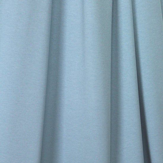 (PANTONE 14-4306, roughly) A beautiful 11 oz. rayon/lycra single knit jersey in a silvery, smokey blue. Rayon/lycra is cool, comfortable, incredibly soft and drapey, has great recovery, and the 11 oz. weight is fabulous for trendy tops and tees, yoga wear, flowy skirt or elastic waist pants, etc. It has about 40% stretch widthwise and lengthwise with great recovery. Machine wash gentle, hang to dry. END OF ROLL, 1.75 yds.