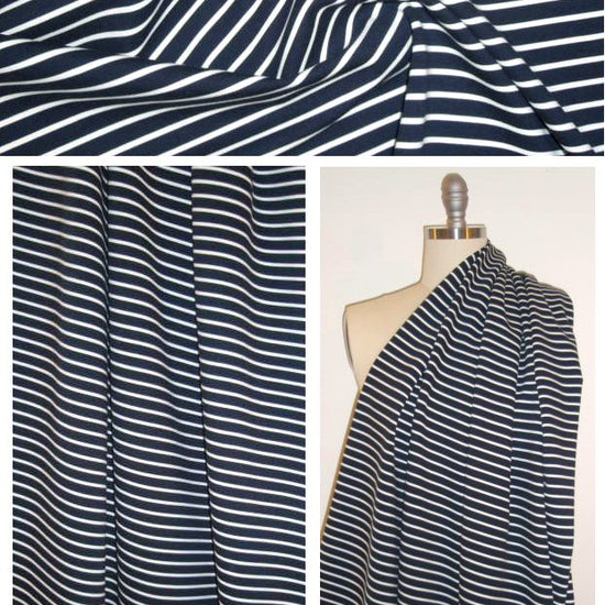 Italian midnight/white stripes rayon blend ponte 4-way 1.5 yds