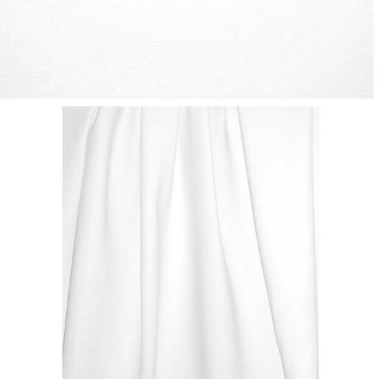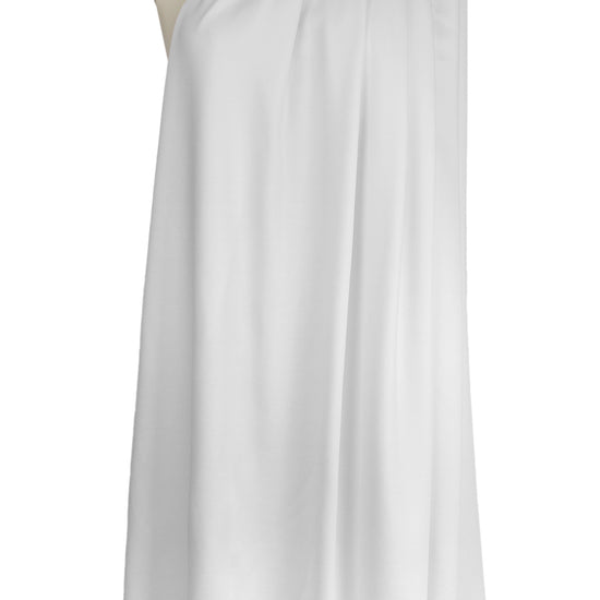 This high-percentage rayon blend ponte 4-way stretch knit is a fantastic basic! The color is WHITE, it's opaque, substantial, elastic with terrific recovery and a lovely drape that has some firmness. Excellent quality, and perfect for knit dress, knit suiting, skinny pants, body-hugging tops, etc. Ample stretch in the width and a bit less in the length with great recovery. Hand or machine wash cool, hang to dry. 1.875 yds.