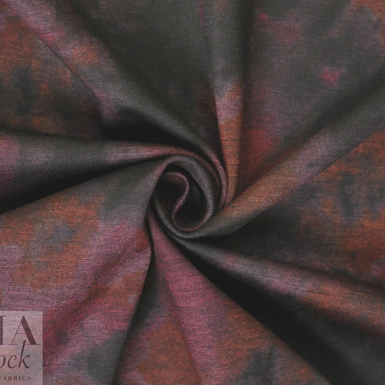 watercolor floral ponte - wine/indigo/brick .75 yds