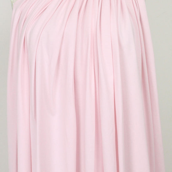 You've asked, we've responded! Here is the same quality cotton knit as our wonderful Dutch cotton knit prints (a little bit heavier) in a solid color, imported from The Netherlands! The quality of the fabric is sublime, soft and substantial, with about 50% stretch in both directions. It is opaque and has a luscious hand and drape with body. The color of this one is a baby pink (PANTONE 12-1310). Make a fabulous tee, top, tunic, skirt, dress, tights, etc. The manufacturer recommends hand or machine wash warm, hang to dry. Please test first. END OF ROLL, .875 yds.
