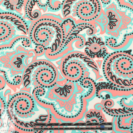 NY designer coral/aqua paisley nylon swimwear 1.25 yds