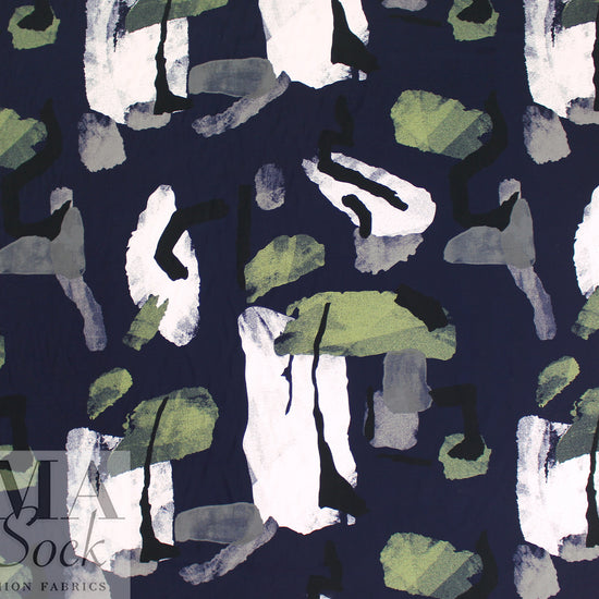 abstract shapes drapey viscose woven - leaf/midnight 1.375 yds