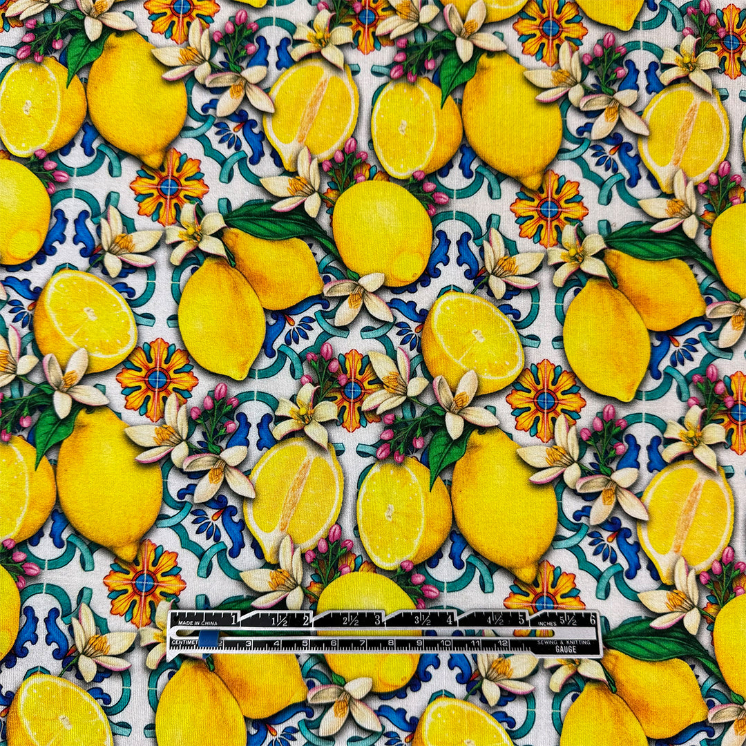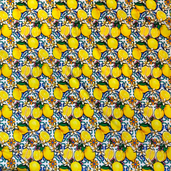 Dutch digital 'lemons from Mallorca' viscose knit, Oeko-Tex cert.