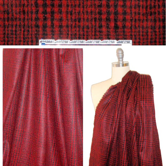 Italian wool/mohair glen plaid - red/black 1.5 yds