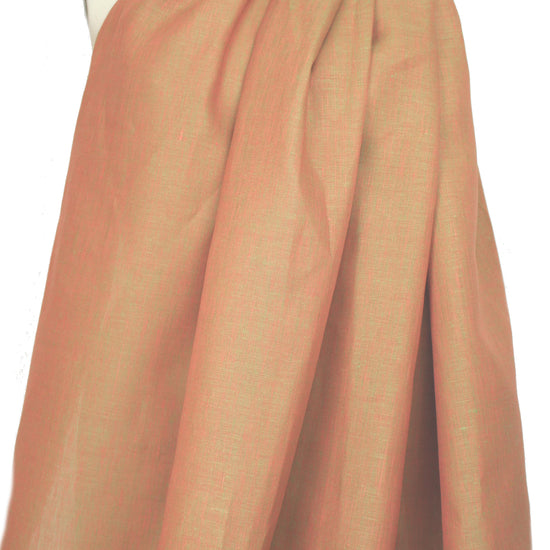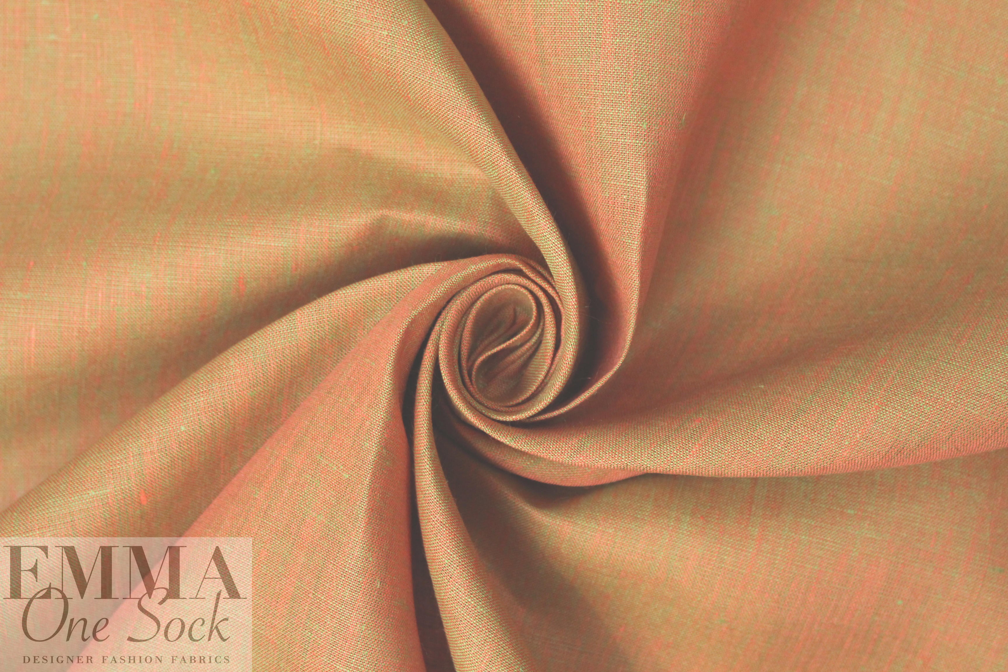 This is a beautiful quality European cross dye linen in a spicy orange with lime weft fibers (PANTONE 16-1349, 15-6442) giving it an overall impression of a nice mix of the two colors. It is a shirting/dress weight woven with some crispness in the drape, opaque, and suitable for a shirt, dress, tunic, airy summer separates, etc. Dry clean or test first if you want to try hand or machine washing. Lay flat or hang to dry. 1.125 yds.
