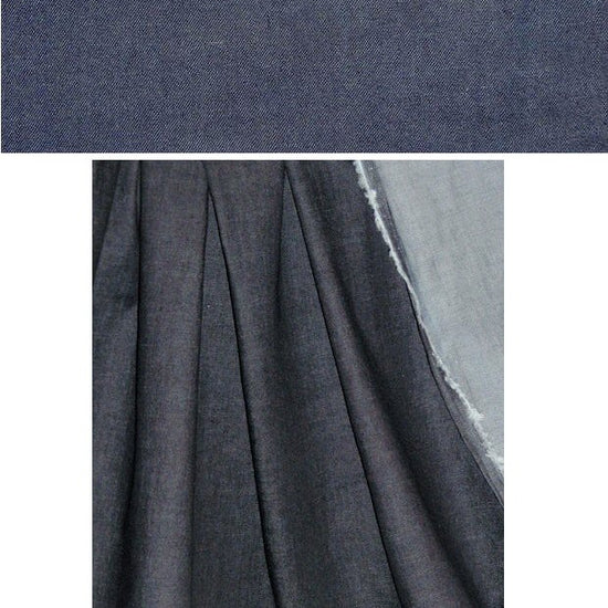 This is a lovely, medium weight cotton stretch denim, an all-season denim for those who prefer just a bit of stretch (about 5%)! It's malleable and soft with cottony drape. The color is an over-dyed dark indigo (PANTONE 19-4010 is close). Great for jeans, jacket, skirt, dress, etc. Manufacturer recommends cold machine wash, hang to dry. Please wash separately, especially for pre-washing. 1 yard.