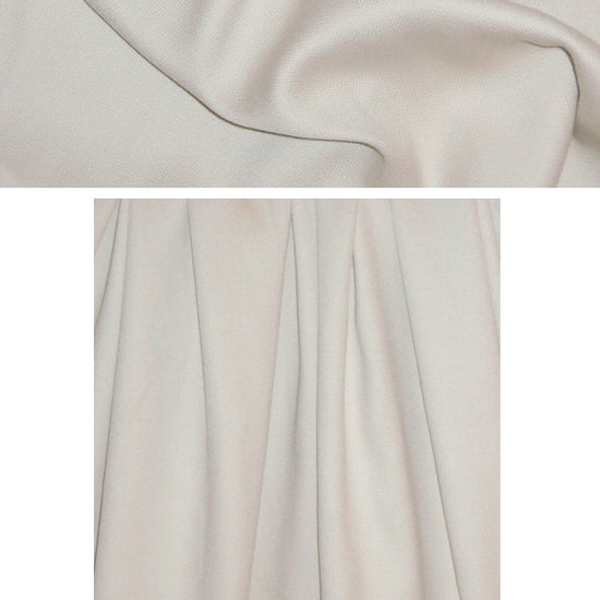 From Coach, this modern classic is refined and sophisticated, a perfect suiting weight solid! Very substantial with a weighty drape and body, and an intricate weave that has a micro-herringbone texture on one side, a micro-pique texture on the other. There's a slight bit of mechanical stretch in the width only. The quality is exceptional, and it's perfect for an indoor or outdoor jacket or coat, or a suit with simple, classic lines. The hand is smooth, not "wooly" at all, and the color is a light khaki/stone (PANTONE 14-0000 is close). Dry cleaning recommended.