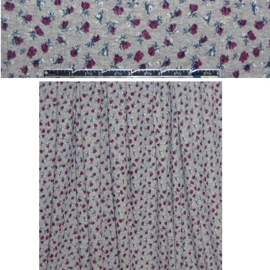 It's so difficult to find printed cotton knits these days, so I was excited to be offered a group of them which I imported direct from Italy. This one is a lightweight 4-way stretch 100% cotton pointelle knit (30% widthwise, 15% lengthwise) with a dry hand and a cottony drape. The print is a pretty little Liberty-esque floral in fuschia, dusty blue and light gray heather (PANTONE 19-2820, 14-4002---ish, etc.), It's opaque (except for the teeny pointelle dots) yet lightweight, and great for casual tees, tops, tunics, loungewear, legging, etc. Hand or machine wash and hang to dry (please test first!). 1.25 yds.