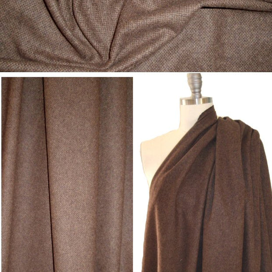 This beautiful Italian cashmere from Ra1ph Lauren is classic and sophisticated, wonderful quality, with a mini-herringbone pattern that has a tweedy look. The color is a mix of medium and dark brown (PANTONE 17-1418, 19-0812). It is a medium suiting weight with a soft drape that has some body, and is perfect for menswear, or a menswear-inspired suit, jacket, skirt, etc. Dry cleaning recommended.