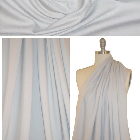 In a beautiful stone color (PANTONE 14-4002), this rayon blend Ponte 4-way stretch knit is a fantastic basic. It's opaque, substantial, elastic with terrific recovery and a lovely drape. Excellent quality, and perfect for knit dress, knit suiting, skinny pants, etc. 40% stretch in the width and length. Dry clean or please test first if you wish to machine wash and hang or tumble dry. 1.875 yds.