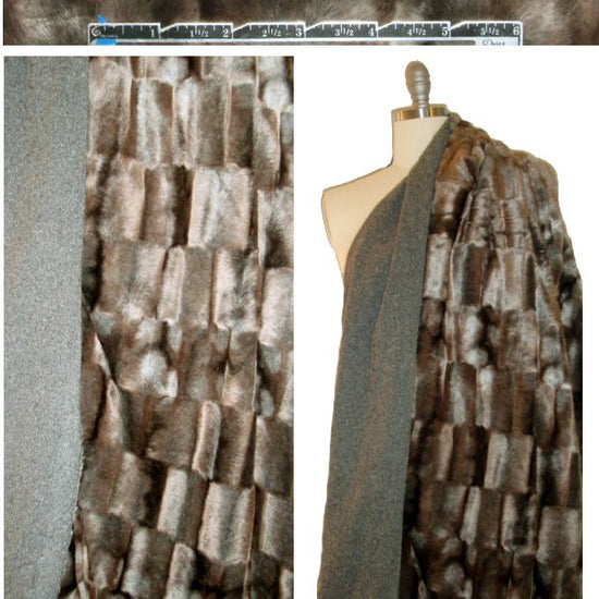This exquisite sculpted and shorter-hair faux fur is from a NY designer, super luxurious and rich, with a mix of sabel and mink tones, backed with a thick gray knit (PANTONE 17-1320, 18-0403, 18-0601...ish). It imitates a marten fur, with a pelted and sculpted look. Luxuriously soft and elegant! Make a stunning coat, jacket or vest, or use for trim. Very malleable, cozy and warm. Much more beautiful in real life! Dry clean only.