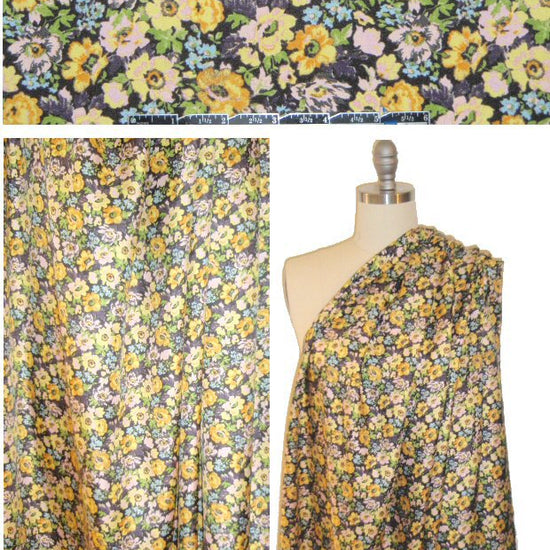 This is a beautiful silk twill print from a NY designer, a blouse weight that is almost opaque with a soft drape that has a bit of body. The vintage flowers print is "Liberty-esque" and sweet, in tones of lemon, orange, leafy green, dusty pink, light blue and soft black (PANTONE 12-0740, 14-1159, 15-0343, etc.). Perfect for a blouse, tops, tunic, skirt, lining for a lightweight jacket, etc. Dry cleaning recommended.