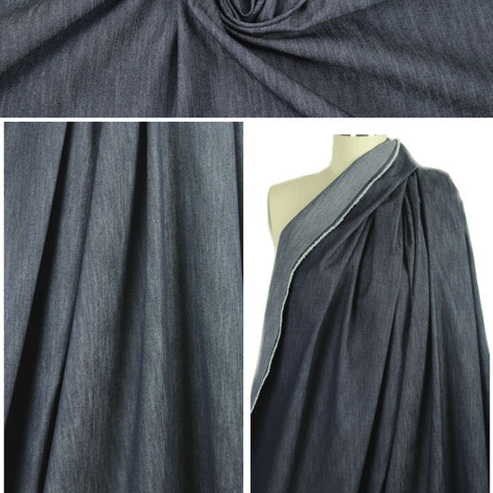 This is a fabulous quality 2-way stretch denim with 15% stretch in the width only. It looks like classic denim but has a herringbone weave. The color is a classic indigo blue (PANTONE 19-3920-ish), and it is an upscale medium weight denim that has a firm drape that will soften with washing, perfect for jeans, jacket or coat, vest, skirt, etc. Pre-wash and dry using the same method you will want to use on your finished garment. MINOR FLAW, 2 yds. (Weaving flaw 1" from selvedge creates a white line and a few small slubs.)