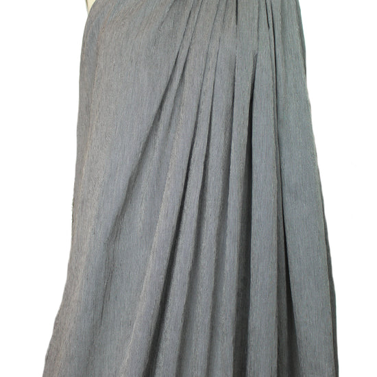 A lovely quality viscose blend yarn dyed woven from a CA designer in an off-black and white mini-stripe. It is medium-light weight and opaque with some crispness in the drape, and the stripes run lengthwise. It is the perfect weight for slacks, capris, over-shirt, tunic, dress, skirt, etc. Mix the direction of the stripes for a trendy look! Dry clean or hand wash and hang to dry. .875 yds.