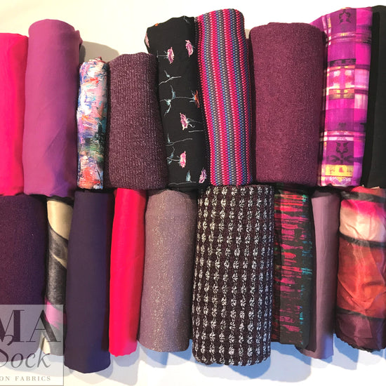 Are you bursting with creativity? Do you enjoy making purses, sachets, pillows, scarves, mittens, hats, doll clothing, color-blocked garments, unconventional quilts or wall hangings, or trimming your garments with a bit of flair? Then these bundles are for you! Sold by the pound, most pieces are 1/4 yard or more, there may be a little flaw here or there, and your cost per yard is WAY below our cost. What a bargain!! This bundle includes a collection of purplish tones. Not eligible for any additional discount offers. NO RETURNS, NO HOLDS, and this listing is not eligible for any discount or free shipping offer.