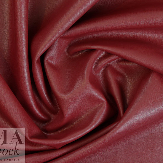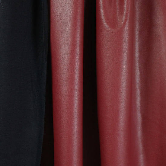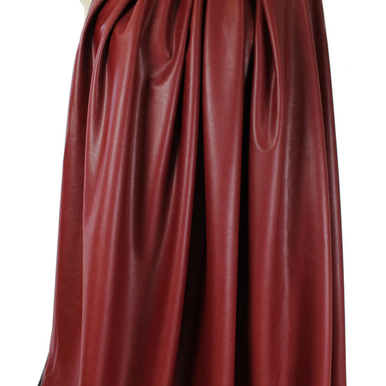 This is a fantastic faux leather from a NY designer!! Beautiful quality, supple and soft with a wonderful drape, feels "real", and is backed with a soft and smooth black viscose/poly fabric for comfort. The color is an oxblood red (PANTONE 19-1540). It has some give in the width only with perfect recovery, and it will work for anything from a coat, jacket or vest to sheath dress, skirt, pants or suit. Dry cleaning recommended (any dry cleaning solvent other than trichloroethylene may be safely used), and they also say a medium iron can be used, but approach this with caution. 1.5 yds.