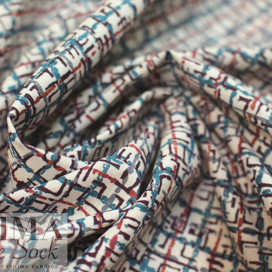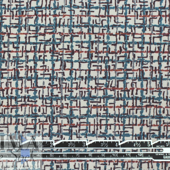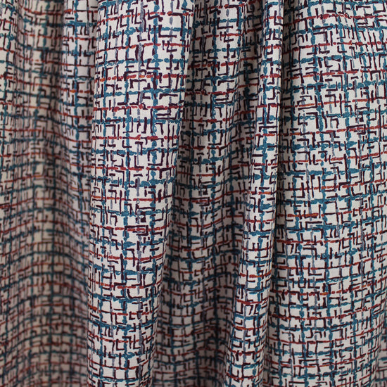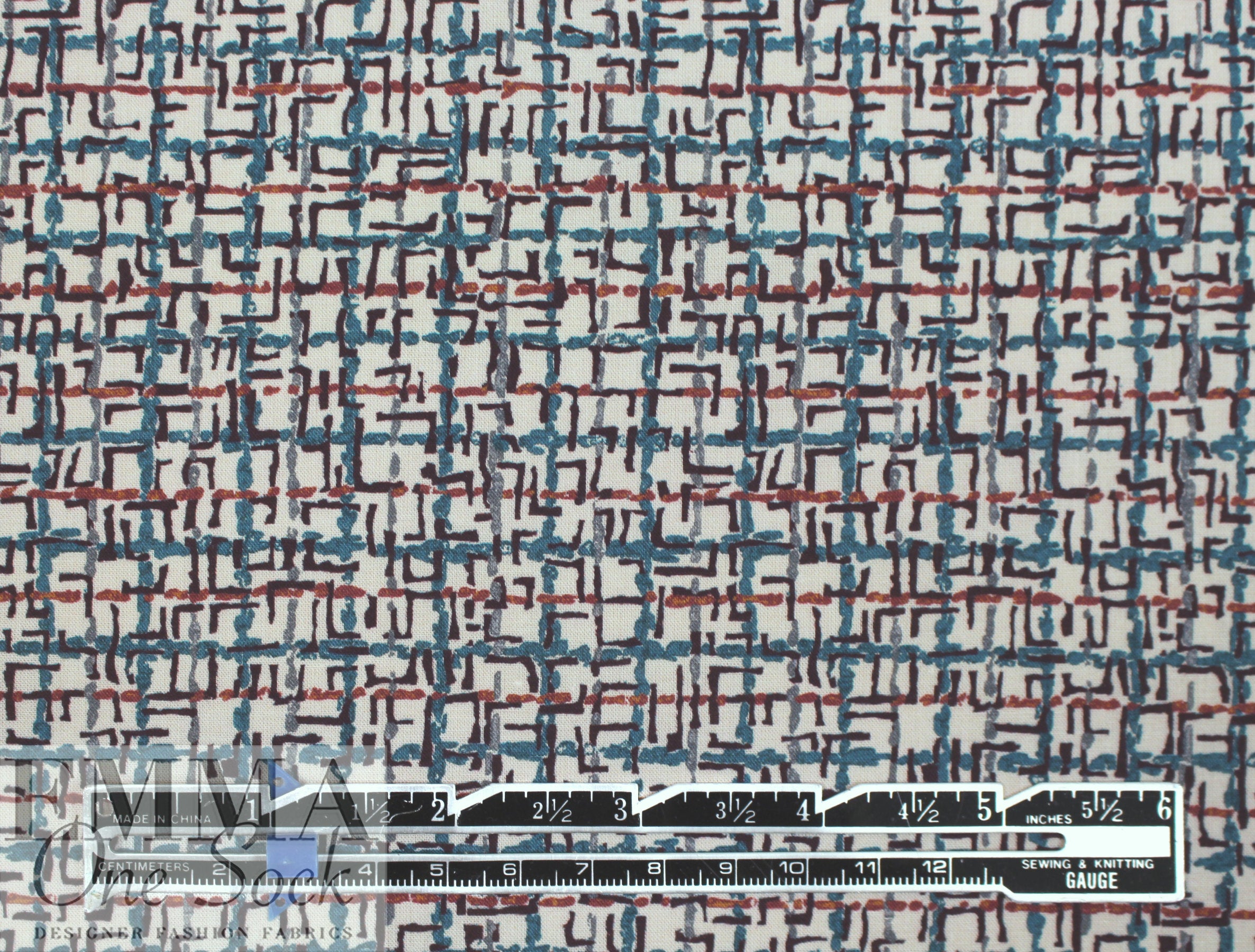 Just in with a shipment from Italian mills, this is a fabulous designer Italian cotton woven shirting, light weight yet opaque, smooth and refined with some cottony crispness in the drape. The wonderful "window hatch" print (1/2" repeat) features brick, ocean blue, dark chocolate, gray and ivory (PANTONE 11-0701, 17-1532, 18-4320, 19-1625, etc.). It is perfect for a men's or ladies' shirt, tunic, etc. Hand or machine wash gentle, and hang to dry (please test first), or dry clean. 2.125 yds.