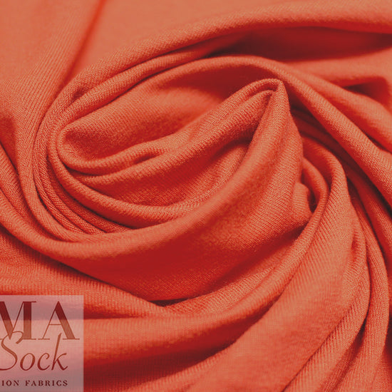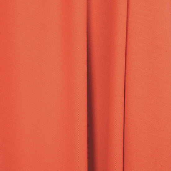 A beautiful 240 GSM EcoVero viscose/spandex single knit jersey in sweet potato (PANTONE 17-1456 is close), lightweight and opaque with beautiful drape. EcoVero is a new (developed by the Austrian company Lenzing in 2017) type of rayon product that is manufactured using more sustainable practices. It is cool, comfortable, soft and smooth, and the 240 GSM weight is fabulous for trendy tops and tees, yoga wear, flowy skirt or dress, etc. It has about 50% stretch in both directions with great recovery. Machine wash gentle, hang to dry. It is perfectly comparable to our standard 11 oz. jersey, which is being phased out. 1.375 yds.