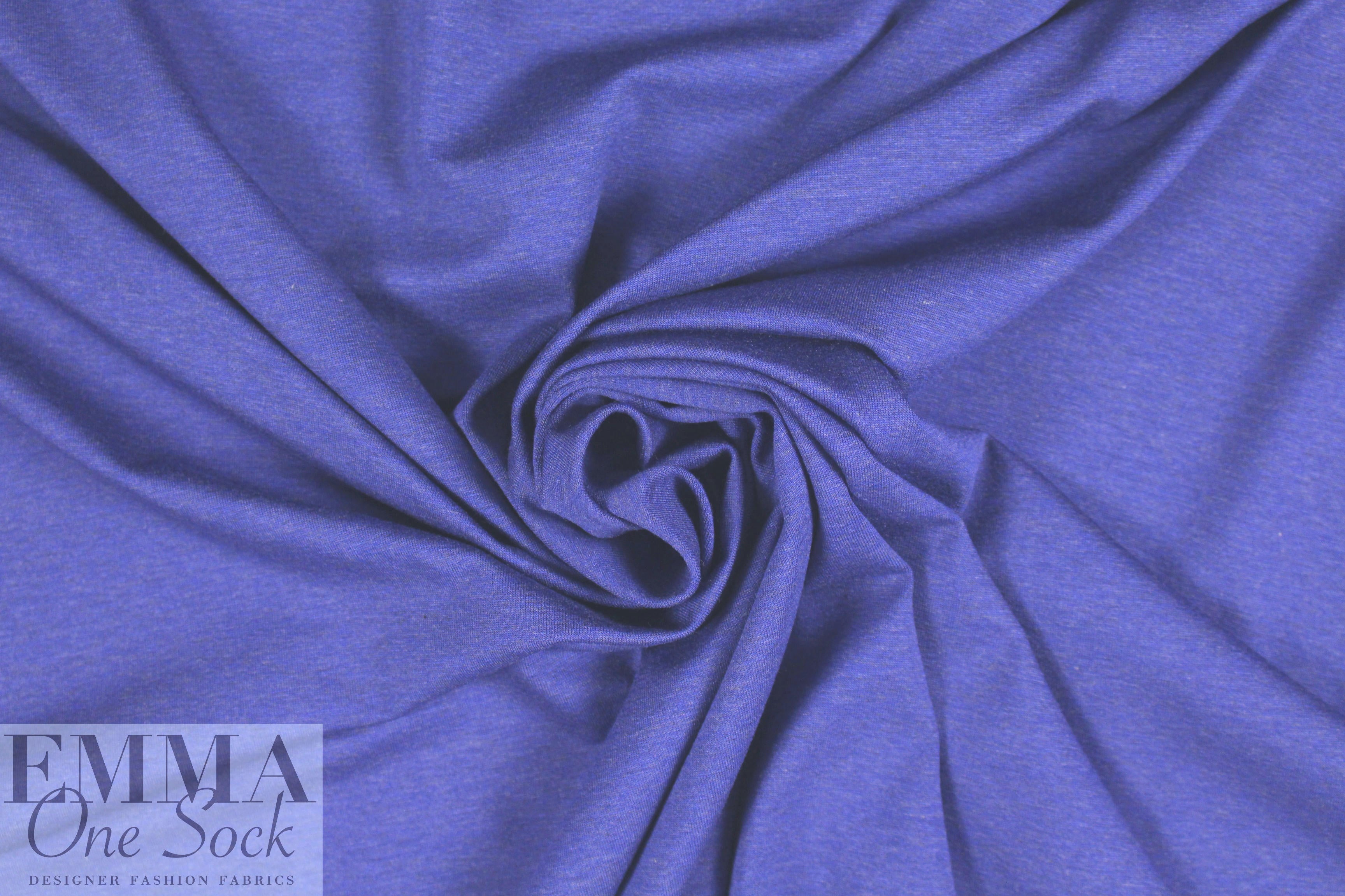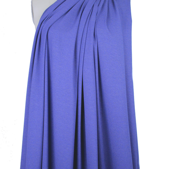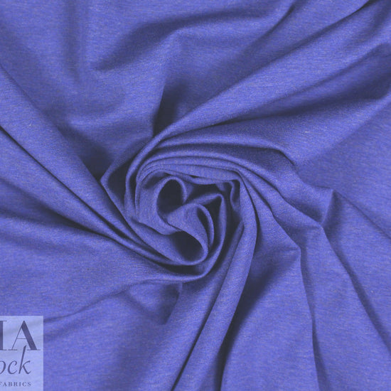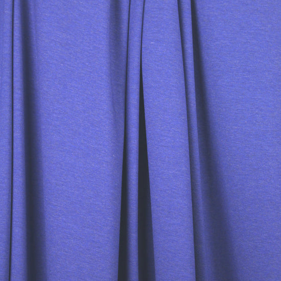 (PANTONE 18-3840, heathered) A beautiful lightweight rayon/spandex single knit jersey in a royal purple heather tone, (could also be called purplish blue). Rayon/spandex is cool, comfortable, incredibly soft and drapey. This one has about 80% stretch widthwise and 40% lengthwise with great recovery, and is great for trendy tops and tees, tunics, dress, flowing skirt. Not at all sheer but it still lightweight. Machine wash gentle, hang to dry. 1.5 yds.