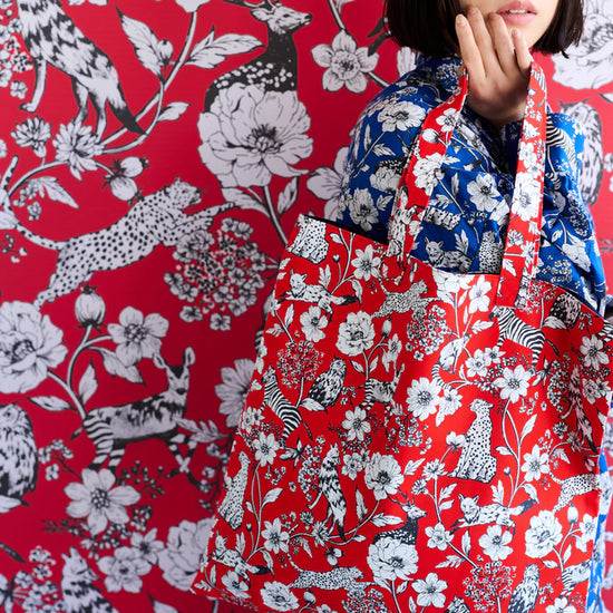 From Kokka, this fabric was made with one of the Japanese fabric maker's most beloved collaborative designers, Etsuko Furuya. This is from their limited edition echino brand line of fabrics! A 100% cotton lawn, it is lightweight, semi-opaque and stable with cottony crispness in the drape. The "wonder" design has a 12" vertical repeat and is printed in black and cherry red on a white base. Note the narrower width which is typical for Japanese fabrics. Make a shirt, blouse, tunic, dress, skirt, etc. Some styles may need lining or layering. Prewash separately with cool water on a delicate setting or hand wash and hang or lay flat to dry. Iron on low-medium setting on the reverse side of the fabric. Please test first.