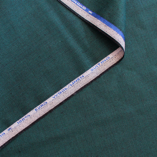 L0ro Piana virgin wool/linen herringbone suiting - blue spruce/black