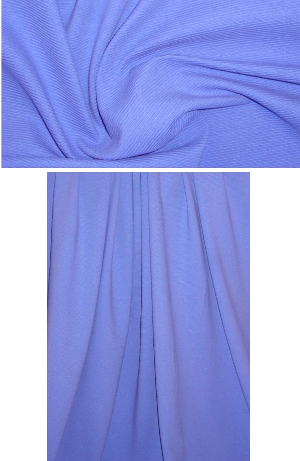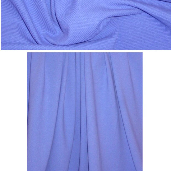 From Land's End, this is a wonderful addition to any casual wardrobe! It's an ottoman-textured cotton blend doubleknit (horizontal rib), medium weight with some body to the drape. It has about 30% stretch in the width and length, but it's quite stable. The color is wisteria, a bluish-purple (PANTONE 17-3932-ish). Make some separates you'll want to live in: a cardigan, knit jacket, tunic top, sweater dress, knit skirt, pullover, leggings, etc. Test first before washing (cold, gently) and hang to dry. 1.5 yds.