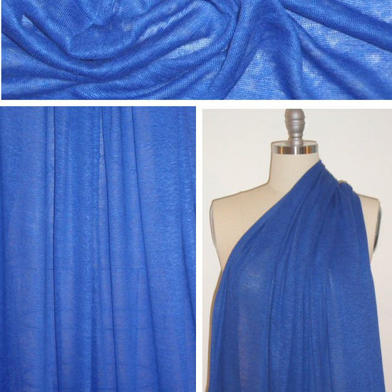 100% linen knit, a customer favorite! This is a wonderful lightweight, semi-opaque linen knit with a slubby texture and 15% stretch in the width only. Lovely drape, fresh and natural, and in a great variety of colors. This colorway is a cobalt blue (PANTONE 19-3955). Perfect for tops, tees, cardigans, pullovers, tunics, etc. The manufacturer recommends hand or machine wash gentle, cold water, or dry clean. No dryer, cool iron. 1.5 yds.