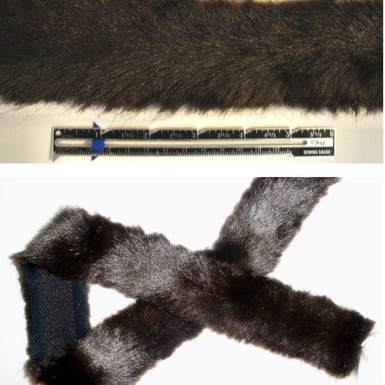 This is a fabulously useful and hard-to-find faux fur trim from L0uise Green Millinery in LA! It pretty much speaks for itself...soft and malleable with a woven backing that seems easy to work with. You can't go wrong! It's a mahogany mink color (PANTONE 19-0812), 2" wide, use for anything from trimming a pair of jeans to a tailored coat or jacket, a great hat to fancy evening attire.