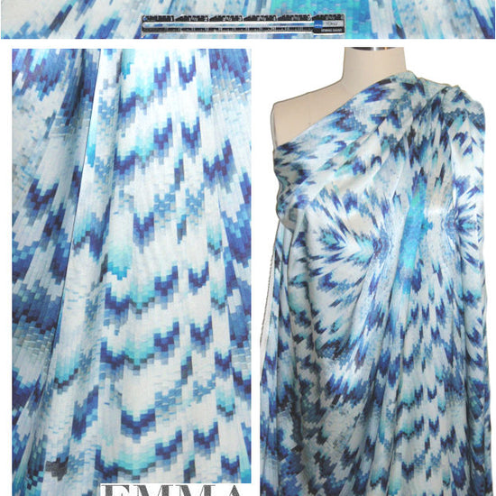 NY designer tuquoise mosaic stretch silk charmeuse 1 yard