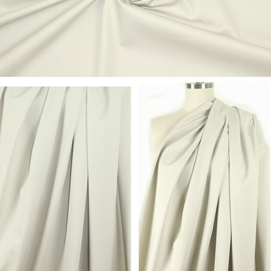 A WONDERFUL quality cotton twill bottomweight from an designer, at a great price! It is opaque and medium weight with a cottony crispness to the drape, and is the perfect weight for jeans, tailored or denim-style jacket, trench coat, etc. The color is a light khaki (PANTONE 12-0605 is close). Test first if you wish to machine wash and tumble dry on low. END OF ROLL, 1.66 yds.