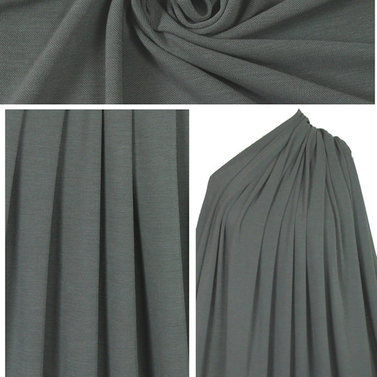 This is a wonderful Italian lightweight wool knit with a pique' texture, drapey, semi-opaque and a versatile all season basic! The color is a gunmetal gray (PANTONE 18-0306). With 50% widthwise stretch, 35% lengthwise, it's perfect for tees, tops, tunics, a light cardigan, etc. Treat as you would any fine sweater knit, or dry clean. 1.33 yds.