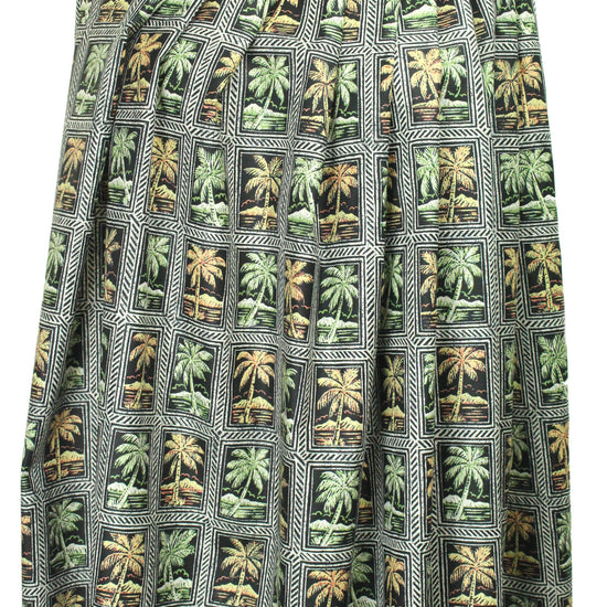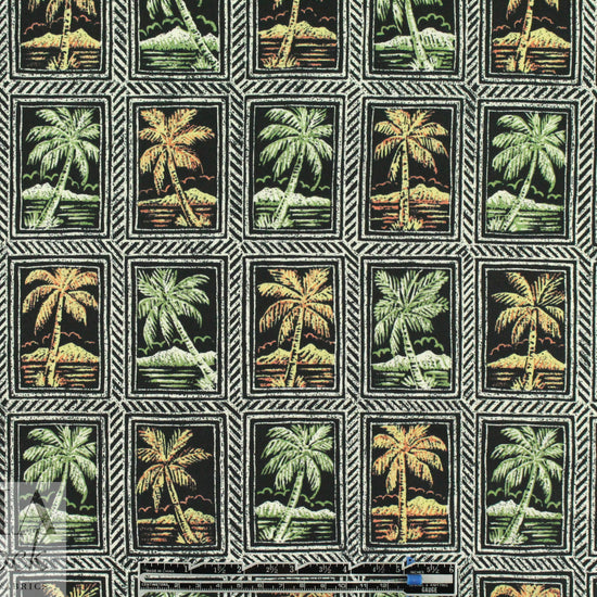 From T0ri Richard, designer of resort wear for men and women, comes this lovely cotton lawn! Both the fabric and the printing are done at a Japanese mill, and the quality is consistent and beautiful. It is lightweight with a tight weave, so it's opaque with a cottony drape that has some body. This "breezy palms" print has a 6" repeat and features tones of soft green, orange lemon white and tinted black (PANTONE 15-6316, 15-1327, 12-0720, etc.). Great for shirts and blouses, tops, tunics, etc. Machine wash cold, delicate. Do not bleach, hang to dry.