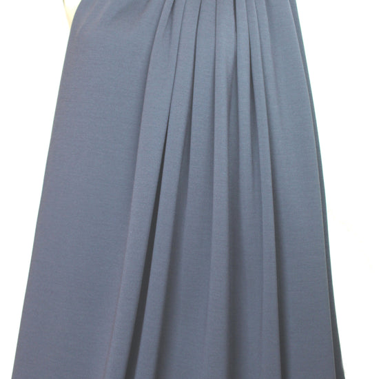 From St. John Knits, this wool doubleknit is a fantastic 3-season basic. The color is slate gray (PANTONE 4127-U), and it's opaque, medium weight but a bit lighter in weight than others in this group, with about 50% stretch in the width only. With its soft texture and drape it is perfect for a knit dress, elastic waist pants, cardigan, tunic, pullover, knit jacket, knit suit, etc. Dry clean or please test first if you wish to hand wash and lay flat to dry.