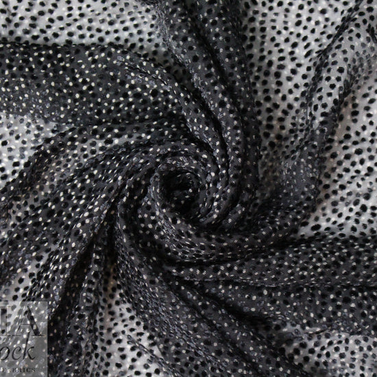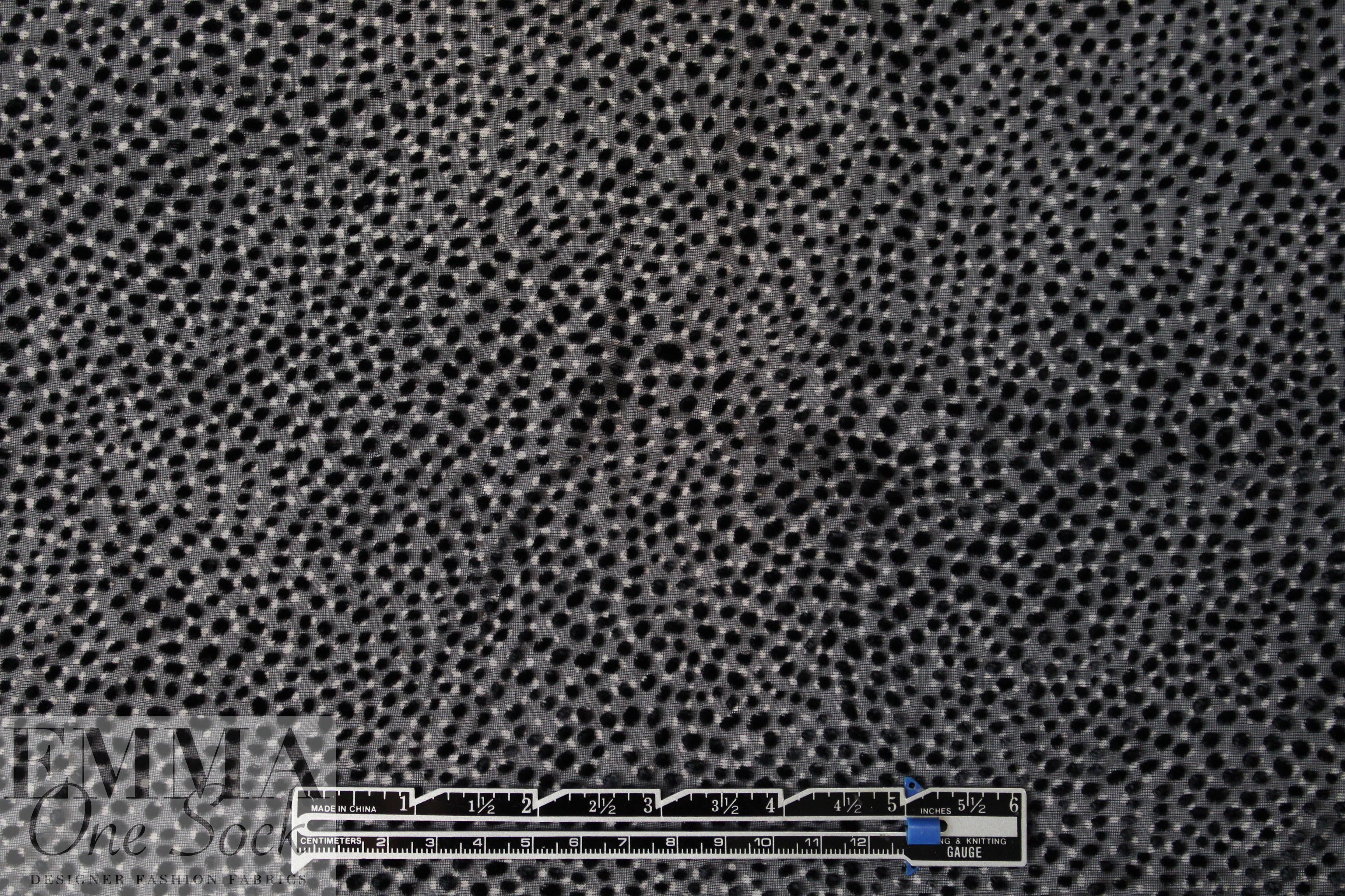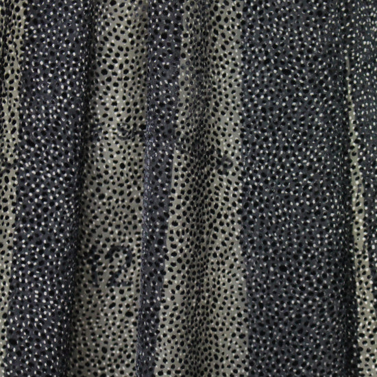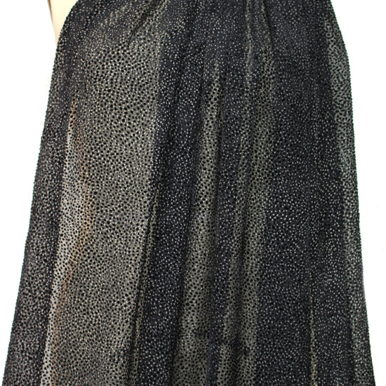 From Noriso1 Ferrari, this is an exquisite Italian silk velvet burnout woven, lightweight and sheer with a floaty drape and little velvet and printed specks on a very sheer ground. The velvet, raised dots are black and printed dots are dull white. So pretty, and perfect for a pretty shawl or scarf, top, tunic, blouse, overlay for a special occasion dress or skirt, etc. Some styles will need lining or layering. Dry clean or test first if you wish to hand wash, and lay flat to dry. LAST PIECE, 1.125 yds.