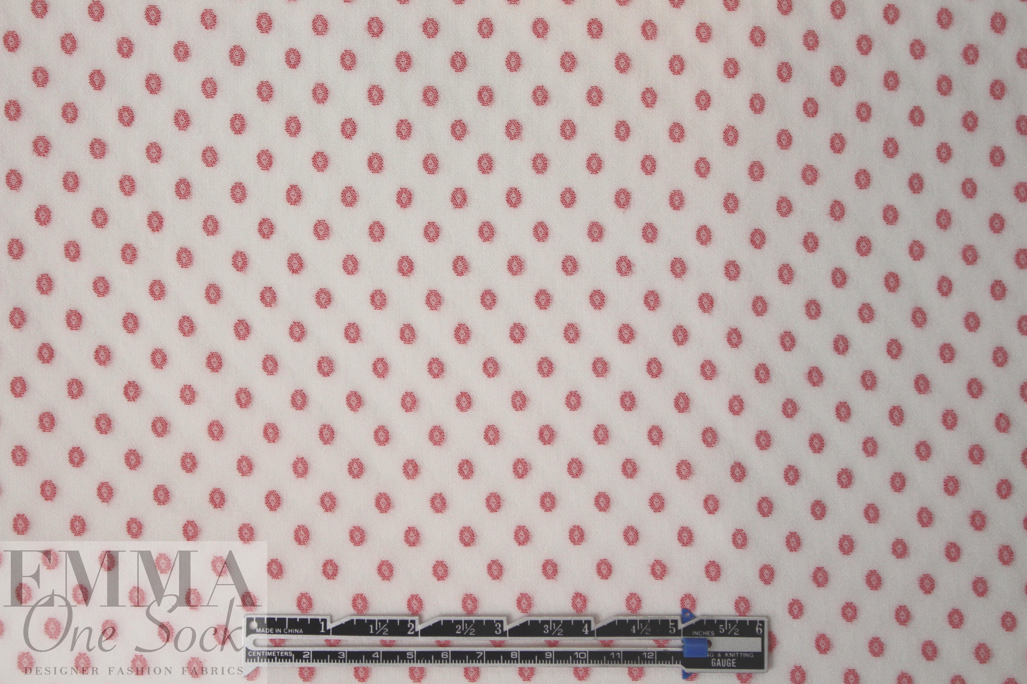 Derek L@m clipped jacquard dot viscose crepe - red/ivory .66 yds